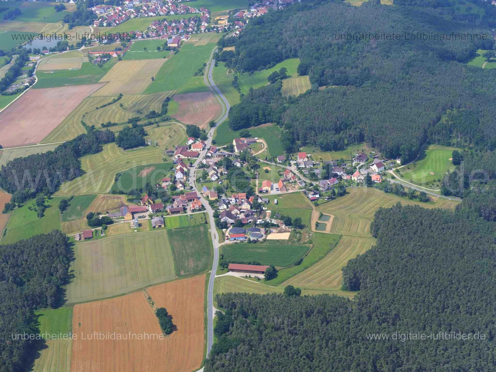 Das Luftbild zeigt folgende Besonderheiten: Kleinabenberg, Dorf, Wald, Forst.