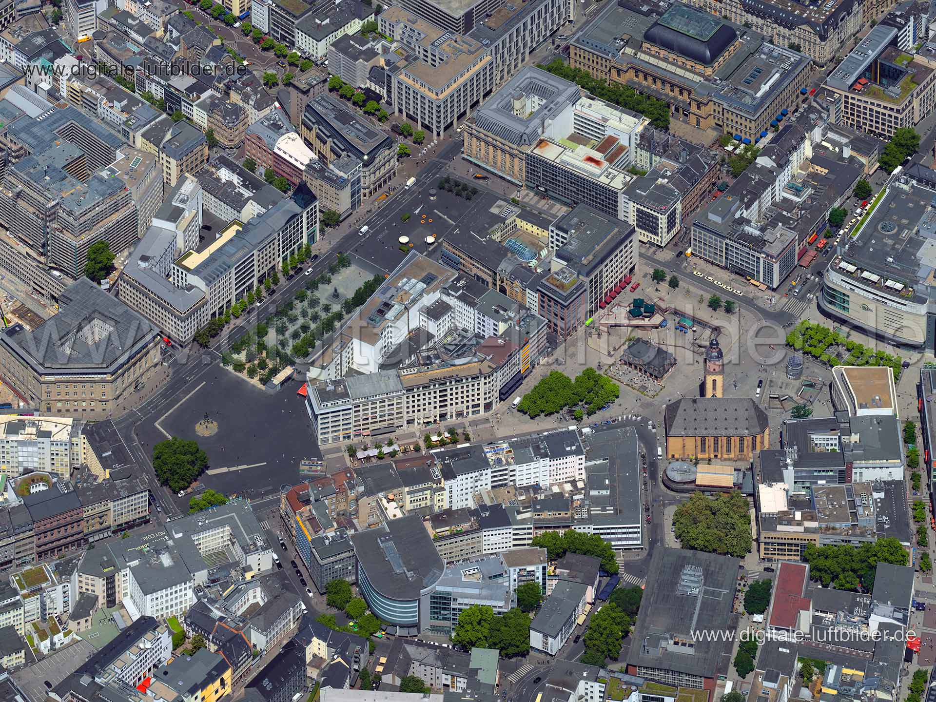 Das Luftbild zeigt folgende Straßen und Bereiche: Hauptwache Frankfurt, Katharinenkirche, Steinweg, Innenstadtwache, Gewerbeflächen & Gewerbeimmobilien, Hauptwache.